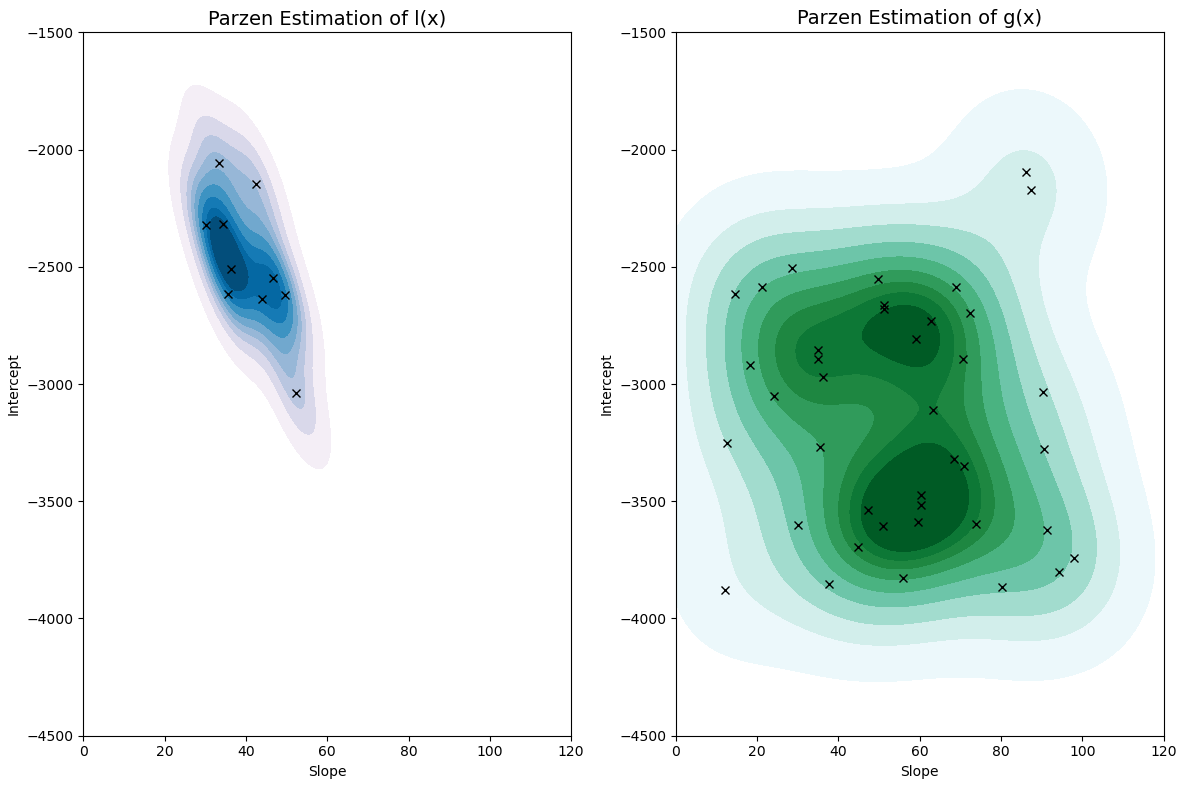 - g(x) : la distribution des hyper-paramètres ayant conduit à de mauvaises performances.